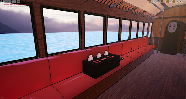 One issue that we encountered is that since this week we started to add more of the prop elements and train scene to the level, we realized that some of them were bigger that the proxy props used for the first week test and setup of the VR game. And so we had to scale them back on maya and let our team know of using the proxies as scale reference.